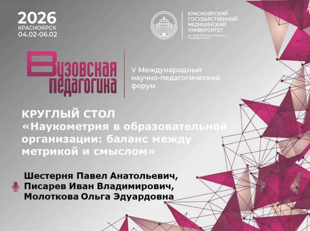 6 февраля 2026 года заместитель директора фундаментальной библиотеки Светлана Александровна Морозова выступила на Круглом столе "Наукометрия в образовательной организации: баланс между метрикой и смыслом", состоявшемся в Красноярском государственном медицинском университете имени профессора В. Ф. Войно-Ясенецкого, с докладом "Конфабуляции (фейки) GPT в библиографии и текстах научных публикаций: практика обнаружения и новая роль вузовской библиотеки".