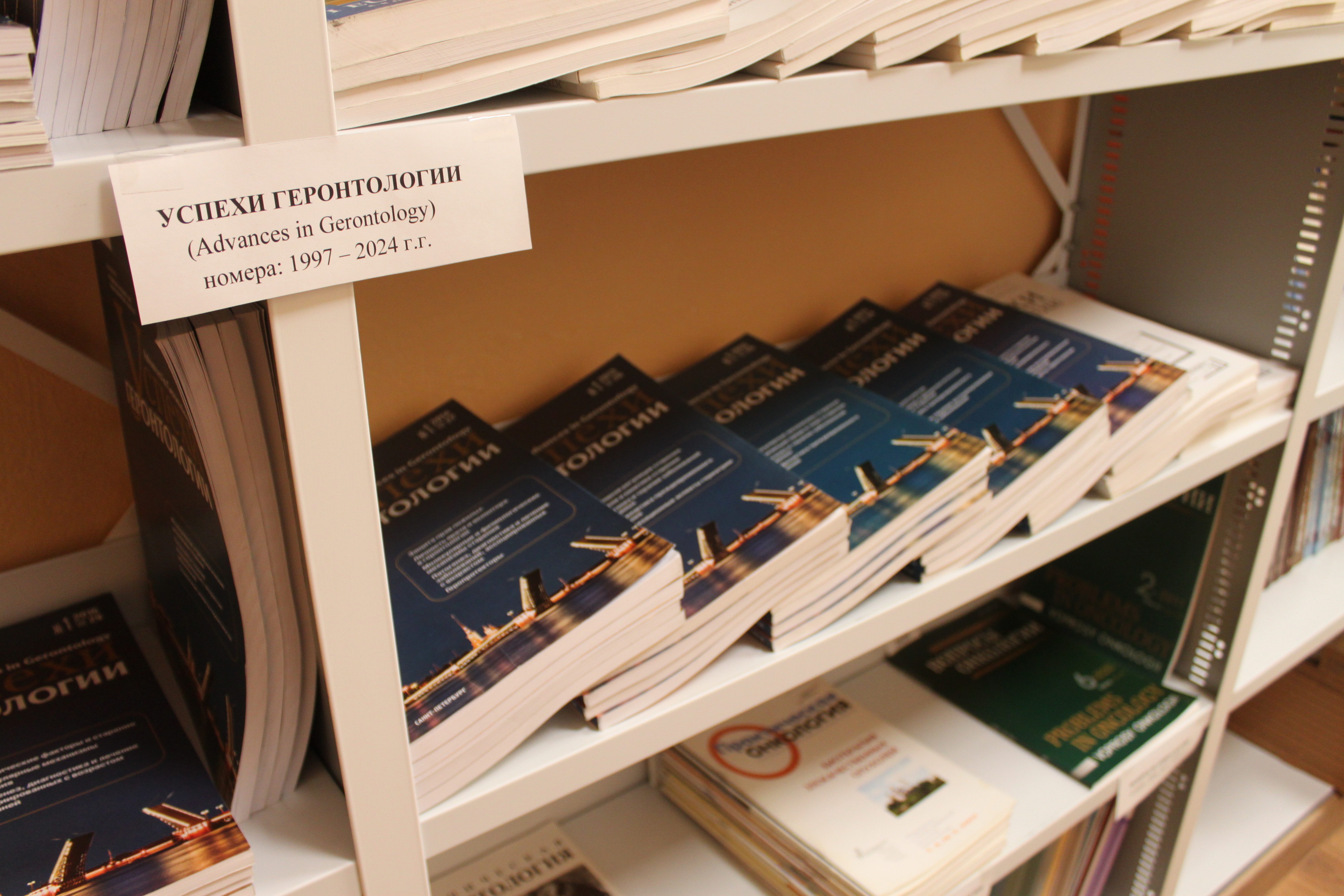 Университет и библиотека стали хранителями уникального собрания материалов о развитии геронтологической науки в России: фонд содержит до 6 тысяч единиц хранения, включая монографии и публикации по истории геронтологии, демографии, медицине, социальной и образовательной тематикам. Основу фонда составили книжные собрания известного специалиста в области геронтологии Владимира Николаевича Анисимова и члена Геронтологического общества при РАН (ГО РАН) Рашида Шаазамовича Бахтиярова, сформированные за 60-летний период.