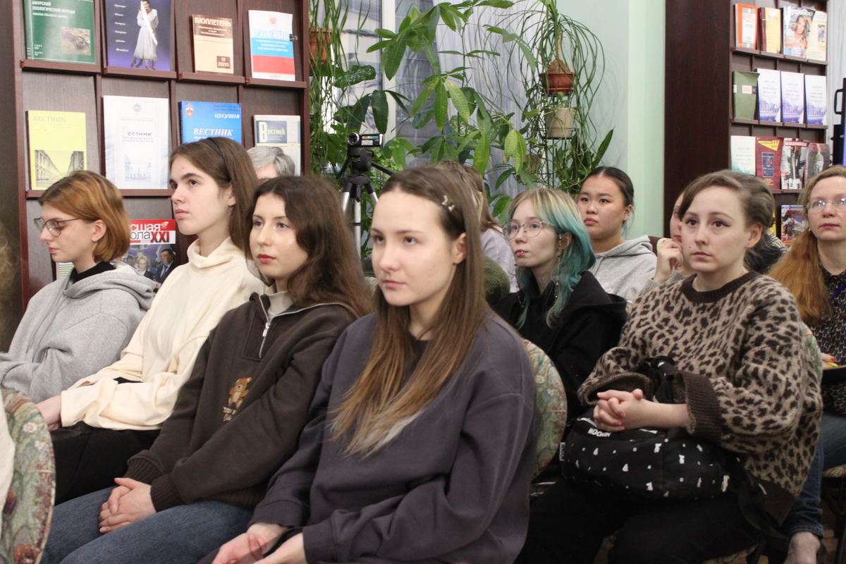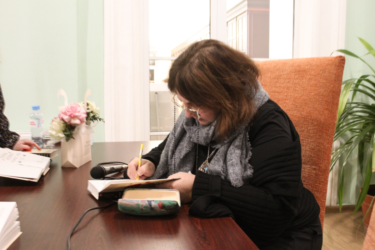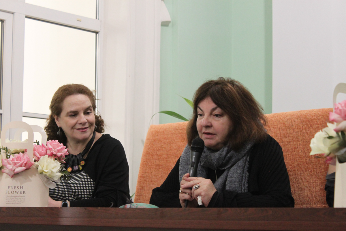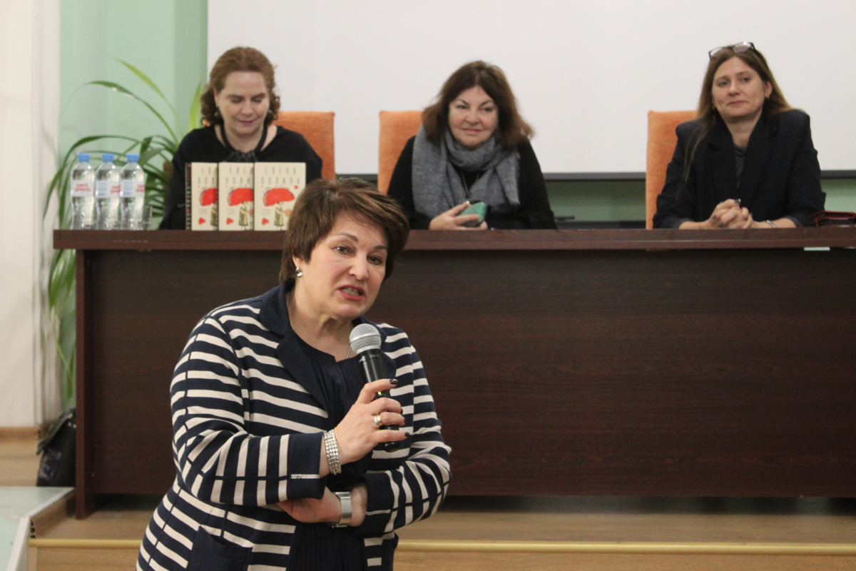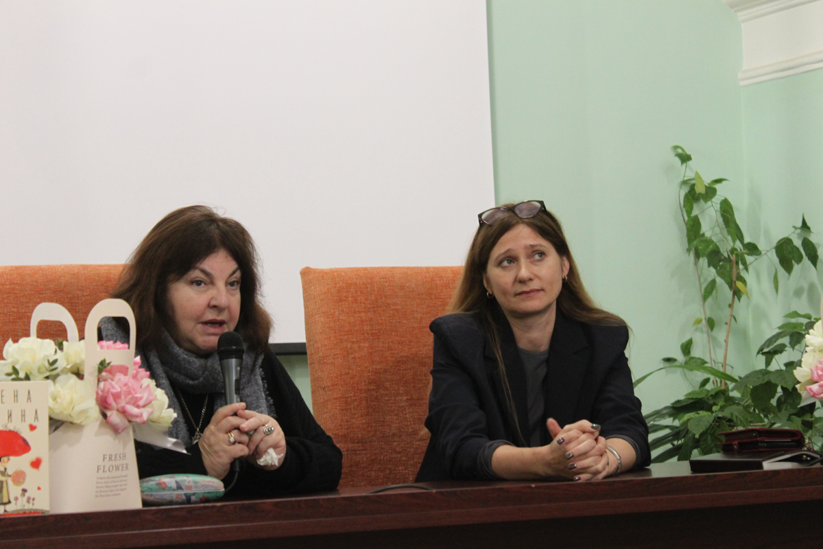 В качестве приветствия директор фундаментальной библиотеки Натела Нодарьевна Квелидзе-Кузнецова преподнесла гостям встречи цветы, а затем представила собравшимся модератора встречи – профессора кафедры русской литературы Марию Александровну Черняк.