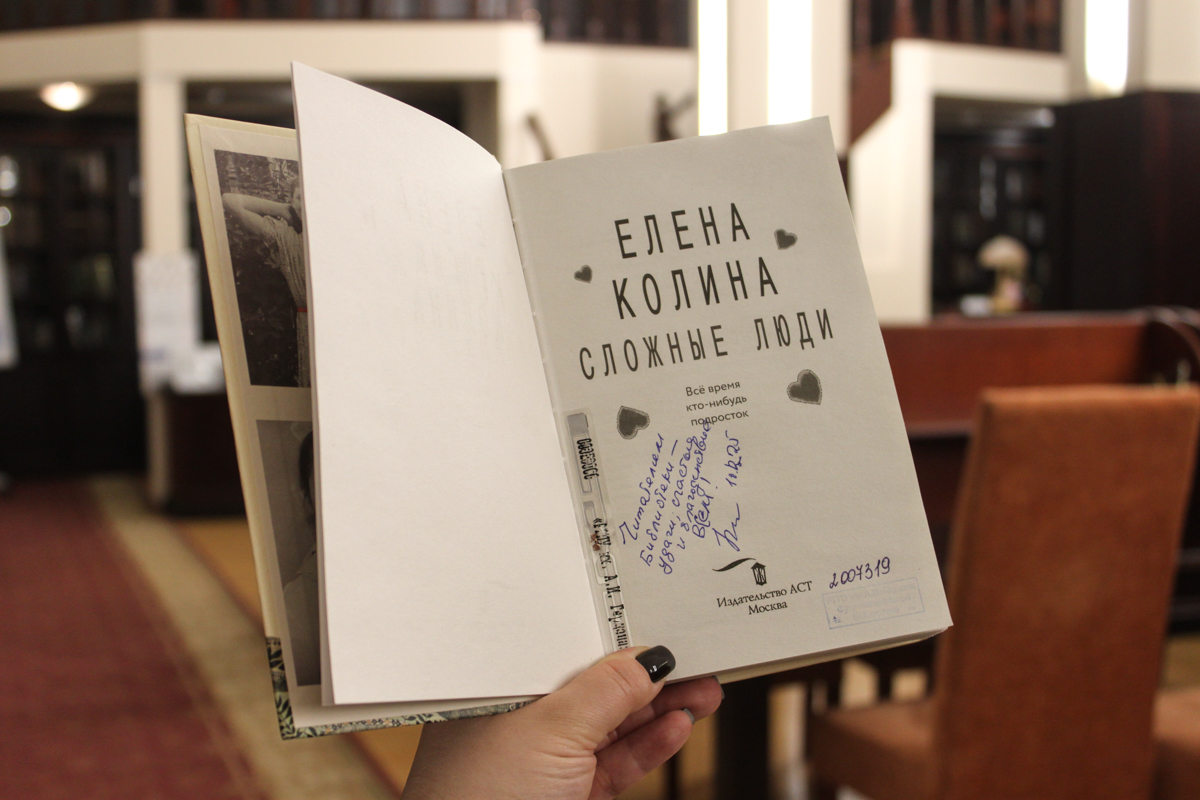 Елена Колина рассказала, что новая книга для нее особенная, ведь это история ее семьи, мамы и тети, которые, будучи детьми 4 и 13 лет, самостоятельно пережили две блокадных зимы. Важно, что в книге эта невероятная история показана отчасти глазами психолога (по второму образованию Е. В. Колина – психолог). При этом гостья отметила, что ей очень приятно видеть на этой встрече студентов института психологии Герценовского университета.