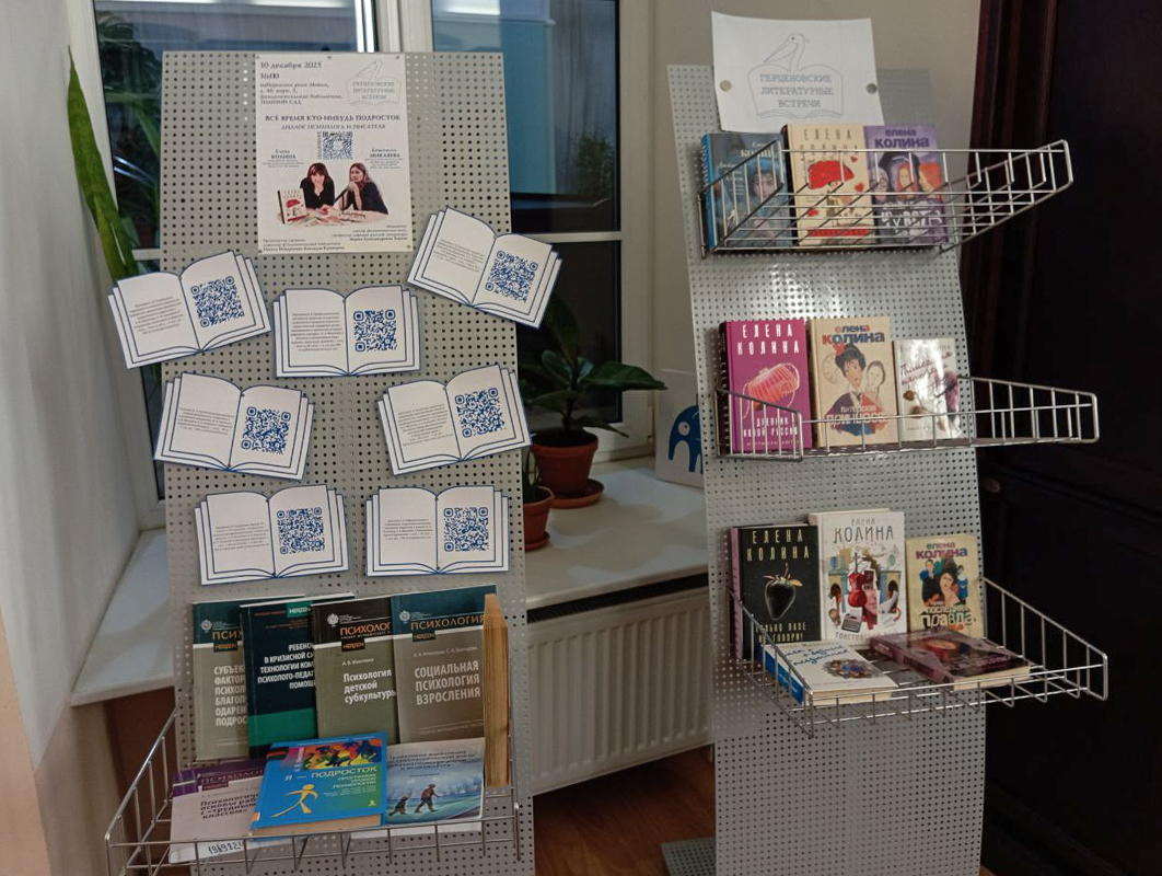 К этому выпуску «Герценовских литературных встреч» была подготовлена специальная выставка книг Елены Колиной и научных трудов Анастасии Владимировны Микляевой, касающихся воспитания подростков. С этой выставкой могут познакомиться все читатели фундаментальной библиотеки.