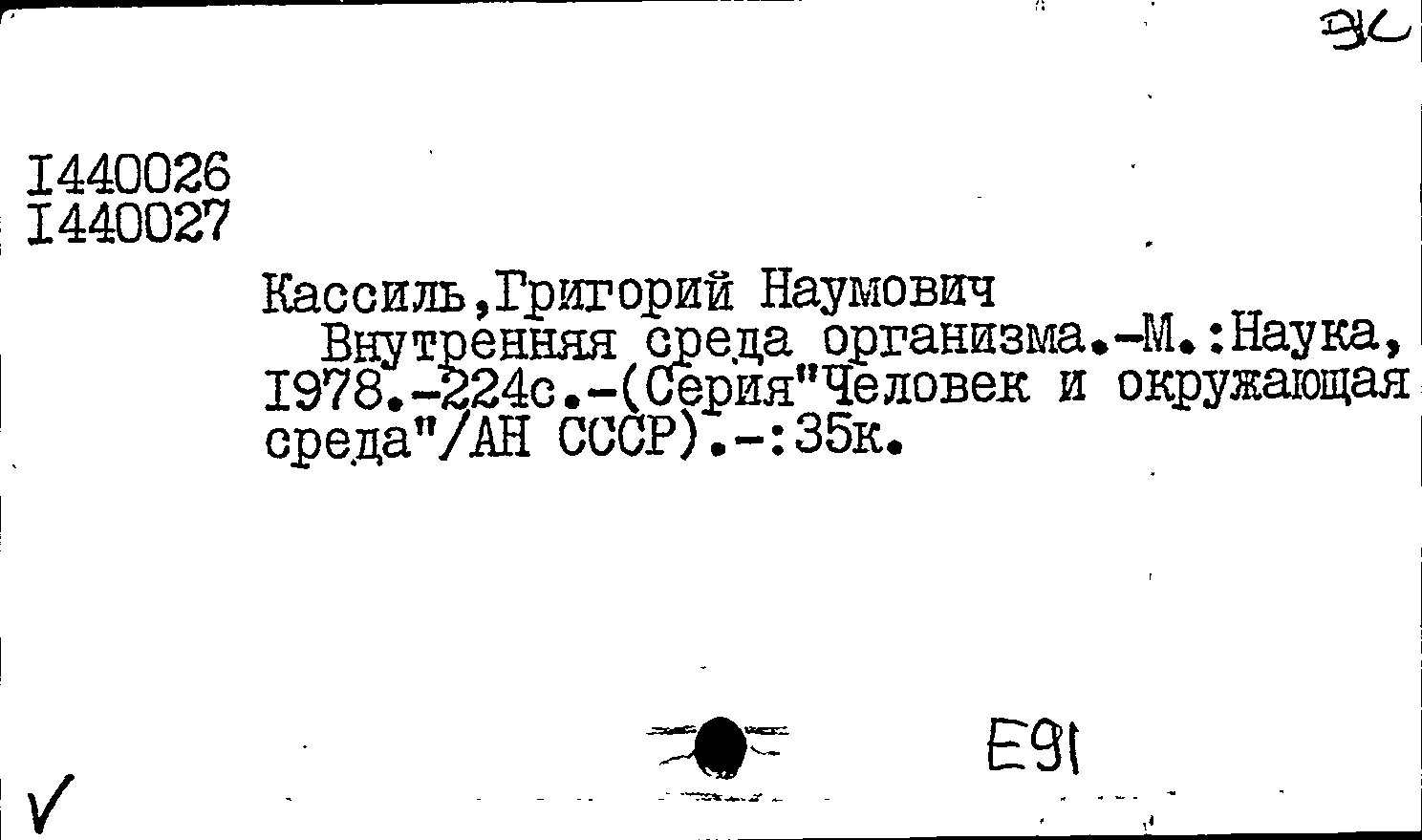 Кассиль Г. Н. Внутренняя среда организма / Кассиль Г. Н. ; ответственный редактор Л. Г. Воронин ; Академия наук СССР. — Москва : Наука, 1978. — 224 с. : иллюстрации. — (Человек и окружающая среда). — Тираж 70000 экземпляров.
