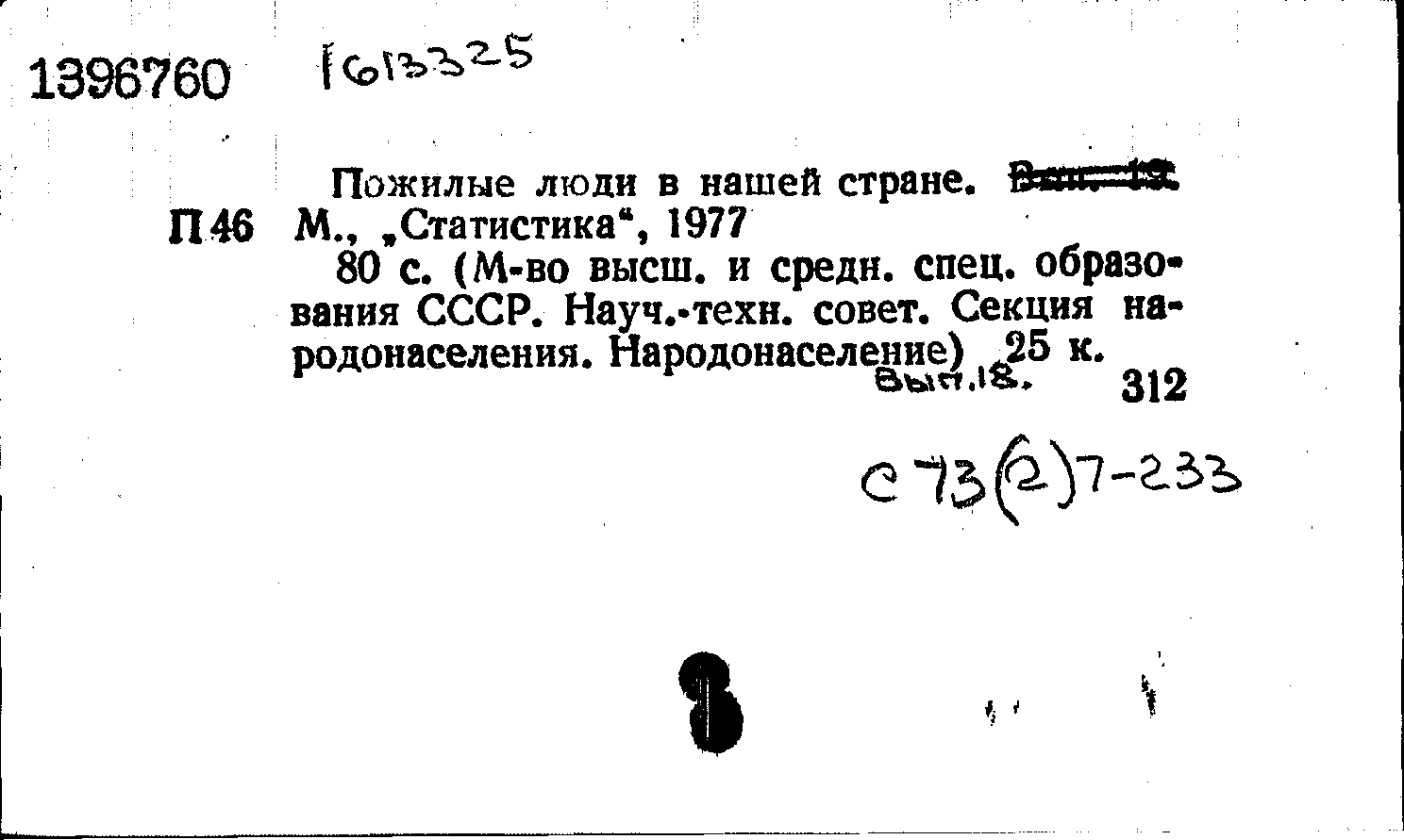 Пожилые люди в нашей стране / редактор-составитель И. В. Дзарасова ; Министерство высшего и среднего специального образования СССР, Научно-технический совет, Секция народонаселения. — Москва : Статистика, 1977. — 79, [1] с. : таблицы, графики, иллюстрации. — (Народонаселение; Выпуск 19).