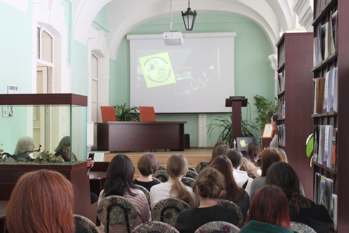 8 апреля в библиотеку пришли старшеклассники калининградской школы № 58. Многие ребята хотят поступить в Герценовский университет, а потому они с интересом знакомились с библиотекой вуза. Школьники также увидели фильм, подготовленный к проекту «Читать, чтобы жить», и выставки блокадных изданий и детских книг военной поры. Не оставила школьников равнодушной и небольшая выставка книг об истории Пруссии, где они могли увидеть прижизненные издания И. Канта.