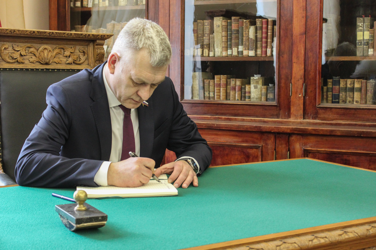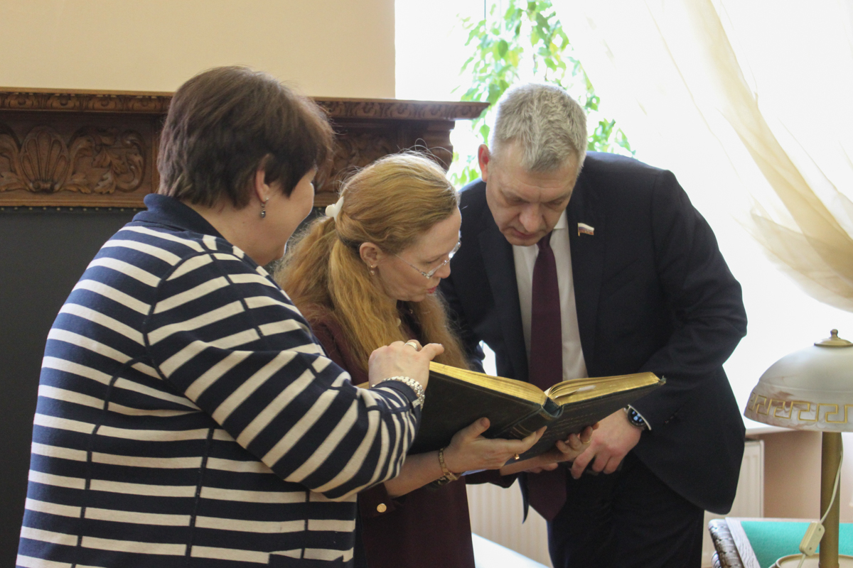 Знакомство с библиотекой понравилось и членам делегации Государственной думы во главе с председателем Комитета Государственной Думы по делам национальностей Владимиром Валерьевичем Ивановым во время рабочего визита в РГПУ им. А. И. Герцена. Директор фундаментальной библиотеки Натела Нодарьевна Квелидзе-Кузнецова рассказала о роли библиотеки в обеспечении образовательного процесса информационно-библиотечными ресурсами, а также о культурно-образовательных проектах библиотеки, посвященных Году защитника Отечества и 80-летия Победы. В завершение визита Владимир Валерьевич оставил запись в книге почетных гостей.