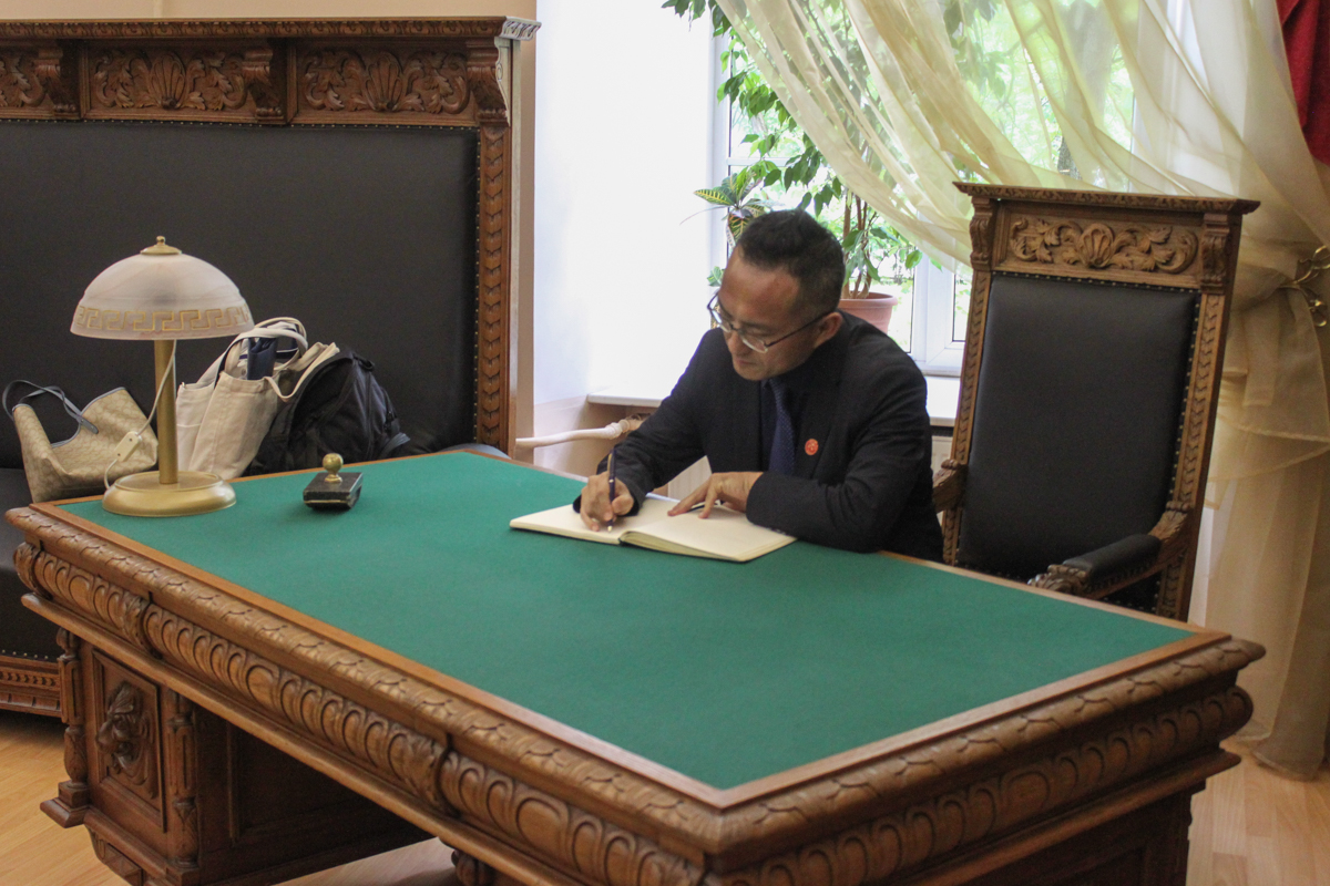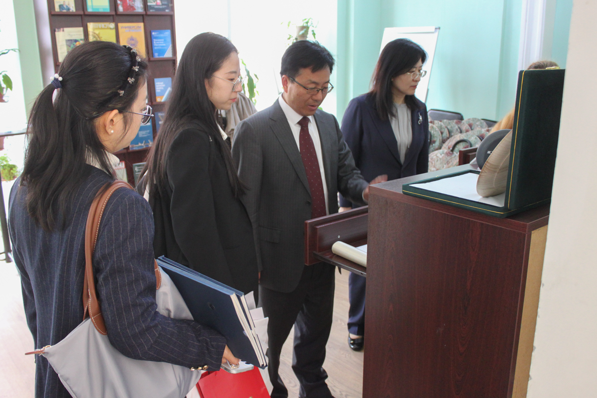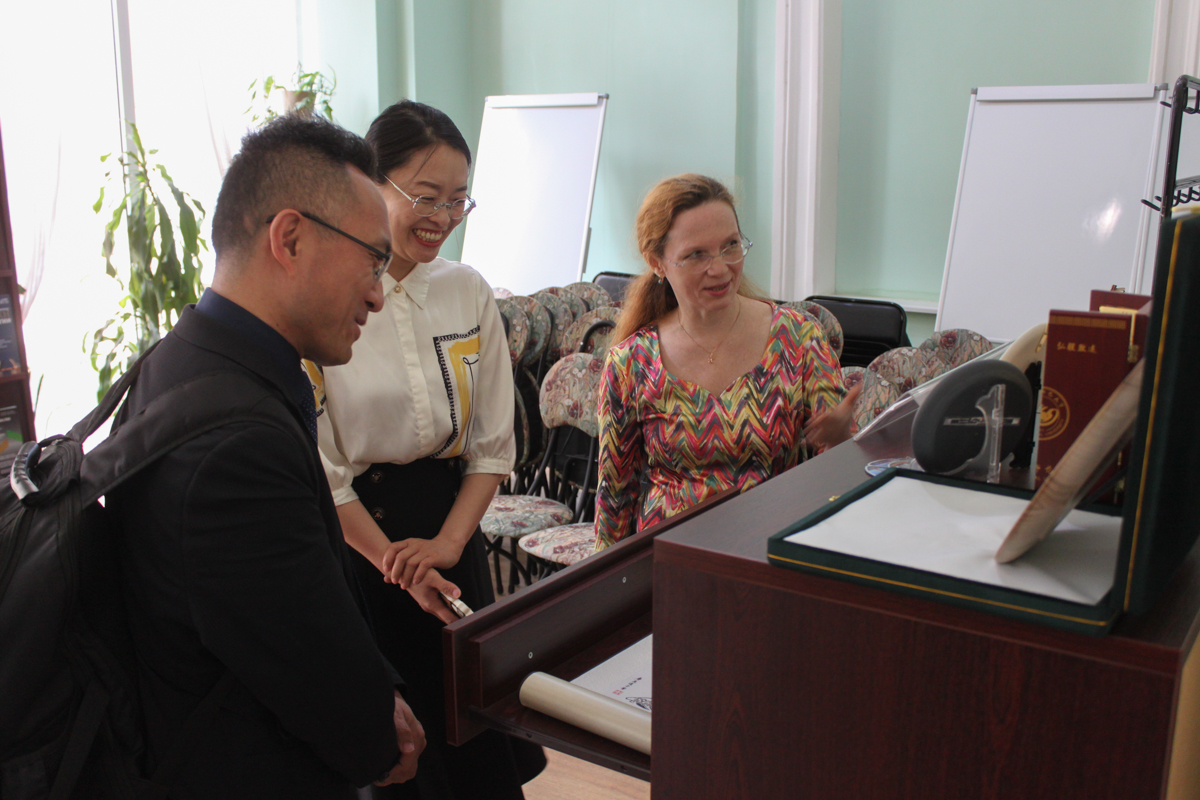 В этот же день библиотеку посетила делегация Чжэцзянского университета иностранных языков (КНР) во главе с проректором по учебным вопросам Чжэнь Вэньтао. Гости заинтересовались использованием искусственного интеллекта при работе с книгой в библиотеке, обратили внимание на бережное сохранение в библиотеке предметов традиционной китайской культуры, подаренных университету, и познакомились с выставкой редких книг, отражающей историческое сотрудничество российского и китайского народов.