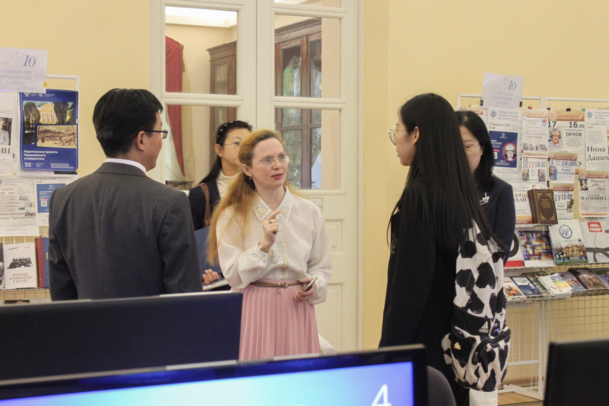 На следующий день с этой выставкой знакомились представители Шаньдунского педагогического университета и ЧУОДО «Академии восточных языков и культуры «Конфуций» (КНР). Гости также с удовольствием узнали о плодотворном взаимодействии РГПУ им. А. И. Герцена с университетами КНР.