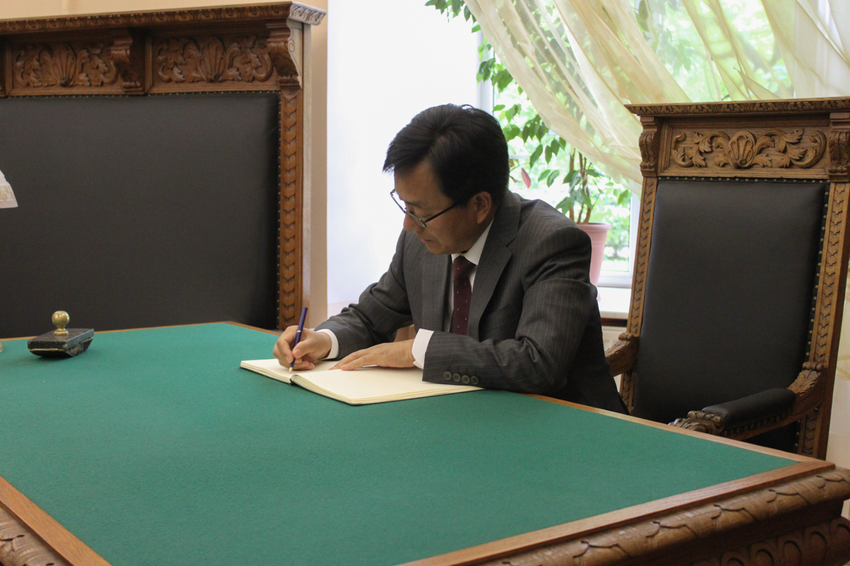 В завершение экскурсии по библиотеке гости оставили благодарственную запись в книге почетных гостей.