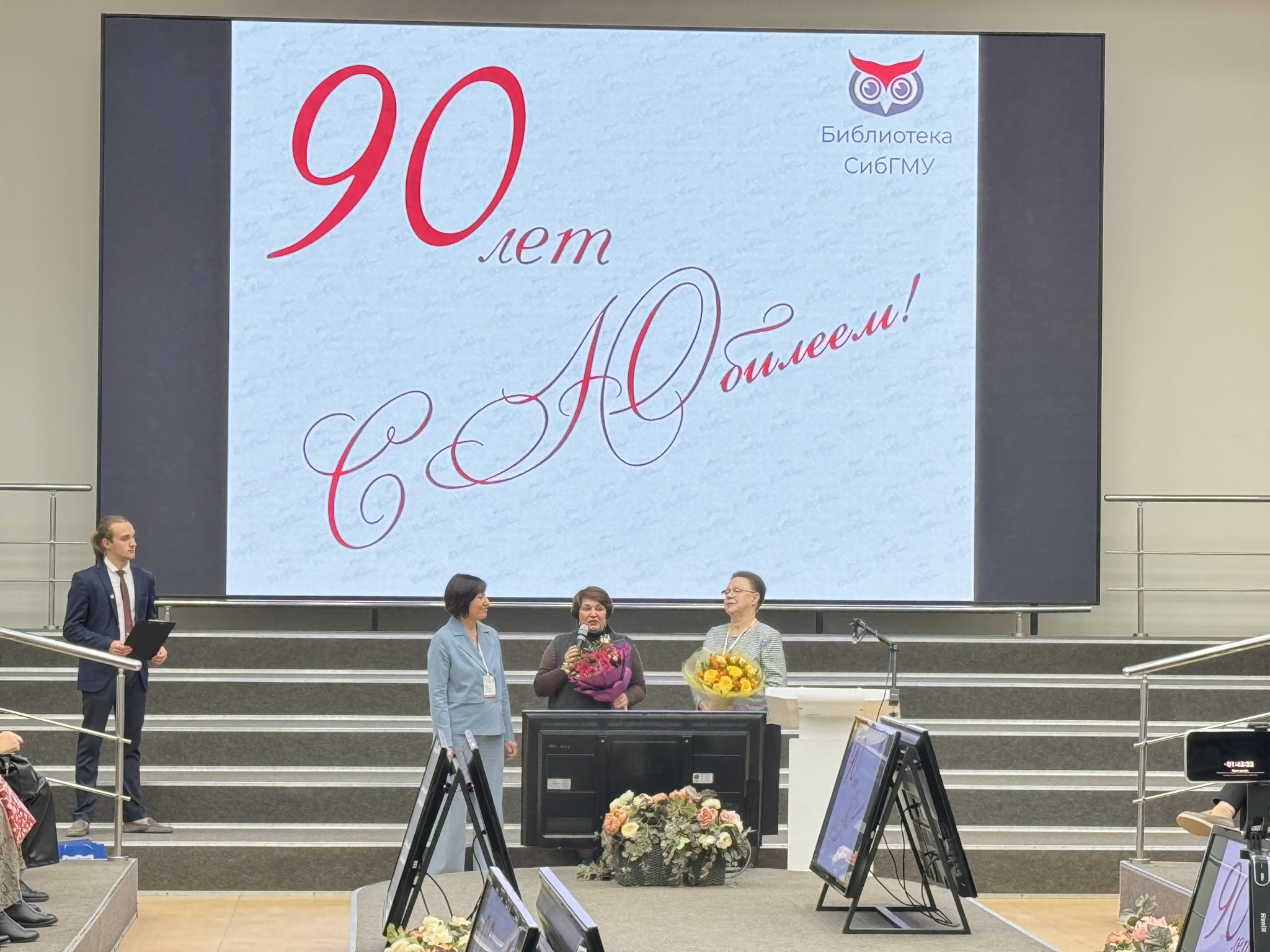 Вечером того же дня в Томской областной универсальной научной библиотеке им. А.С. Пушкина состоялся торжественный вечер, посвященный 90-летию Научно-медицинской библиотеки Сибирского государственного медицинского университета. От РГПУ им. А.И. Герцена всех сотрудников библиотеки поздравила директор фундаментальной библиотеки.