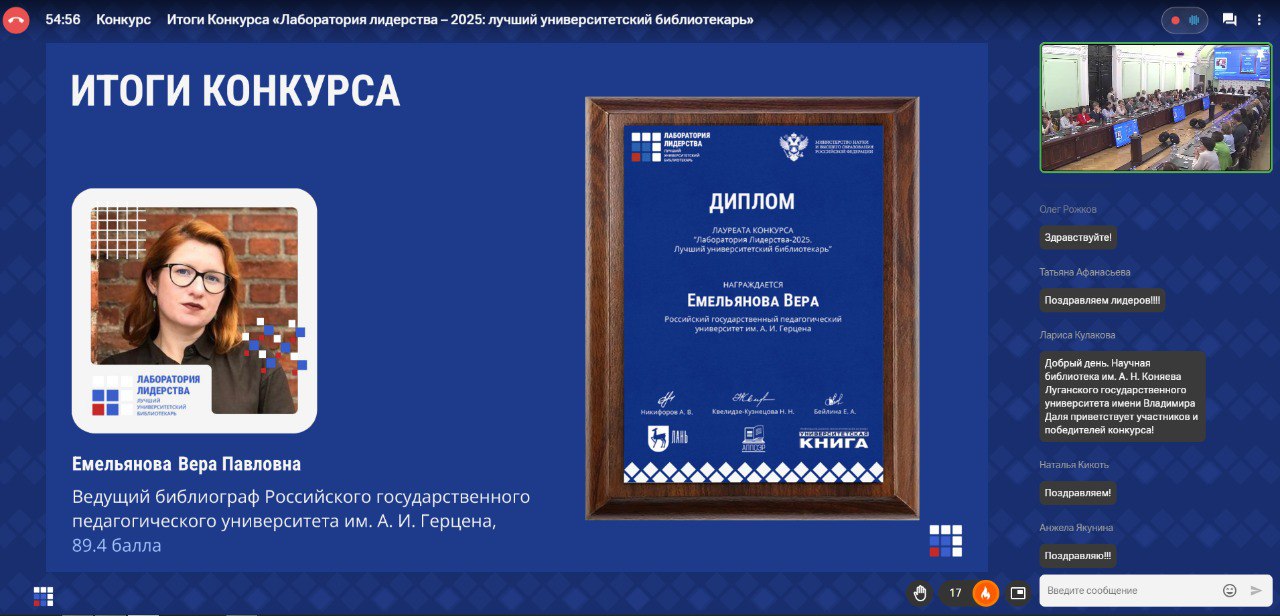 23 октября состоялось Подведение итогов конкурса «Лаборатория лидерства: лучший университетский библиотекарь 2025» и объявление Университетской библиотечной столицы 2025-2026.