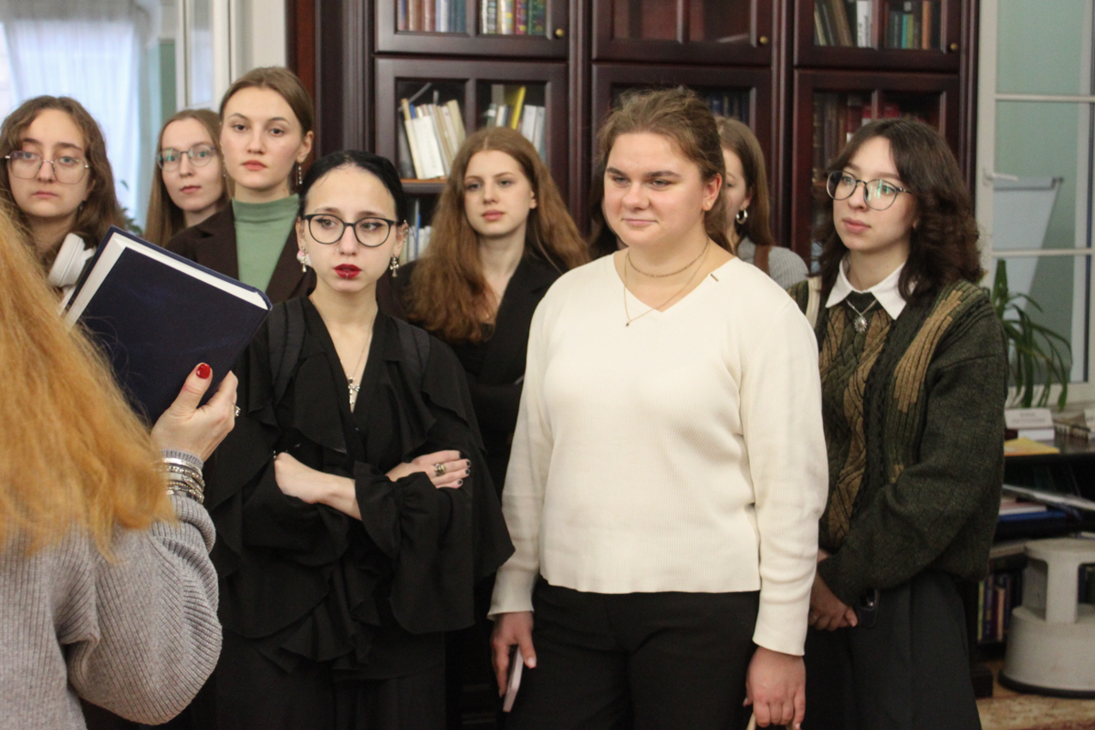 Поскольку этот курс был разработан почетным профессором РГПУ им. А. И. Герцена Валентиной Данииловной Черняк, студентам было интересно познакомиться с диссертациями профессора и ее учеников. Эти исследования могут быть полезны филологам с точки зрения методики исследования языкового материала. В научном читальном зале студенты также познакомились с новым изданием трудов В. Д. Черняк – книга вышла в издательстве РГПУ им. А. И. Герцена в 2025 году.