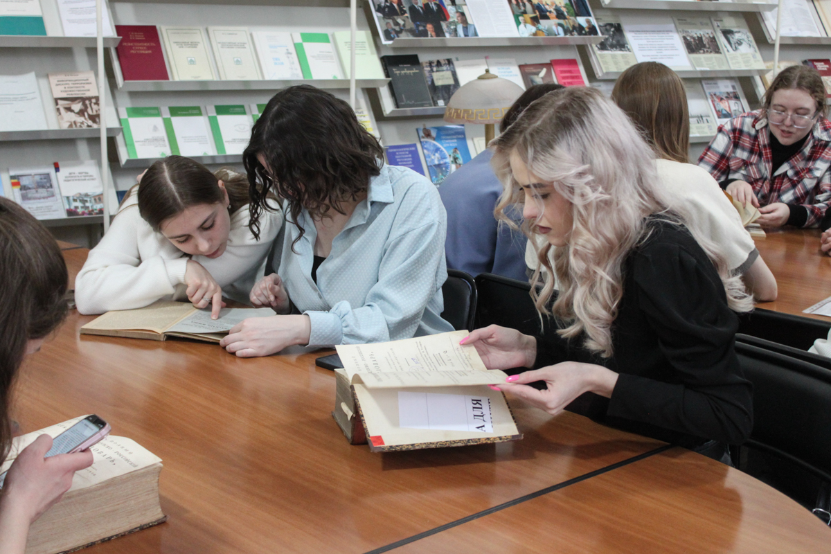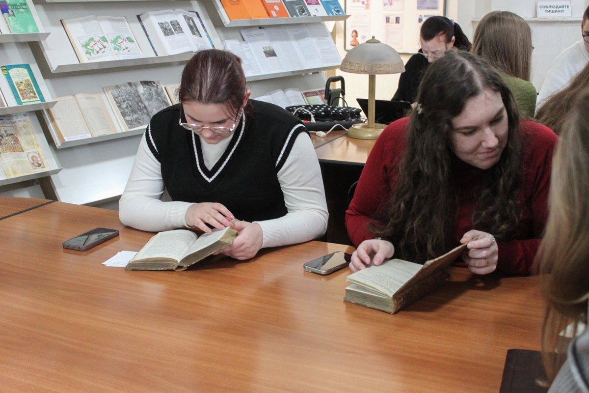 8 декабря в библиотеке прошли экскурсия и занятие для бакалавров третьего курса филологического факультета. В рамках изучаемой дисциплины «Словари в практической деятельности филолога» студенты знакомились со словарями XVIII-ХХ вв. Инициатор экскурсии, доцент кафедры русского языка