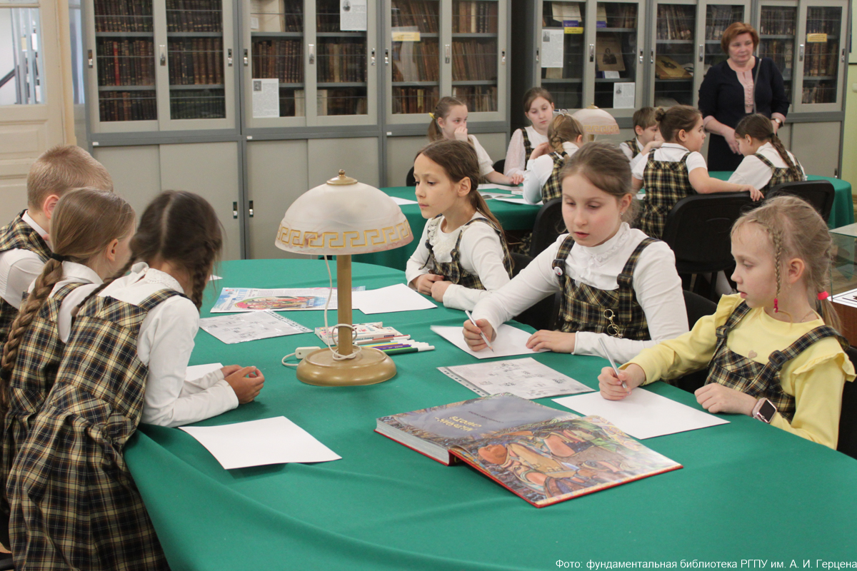 7 апреля в библиотеку пришли ученики 3 «Г» класса Второй Санкт-Петербургской гимназии. Ребята впервые переступили порог университета, поэтому все вызывало у них живой интерес и любопытство: и большие залы библиотеки, и работы студентов института художественного образования, и аквариумы Зимнего сада.