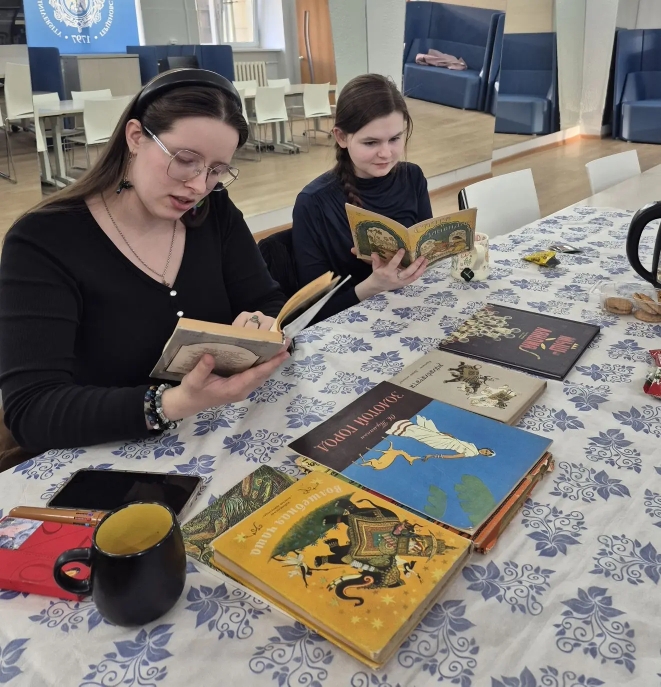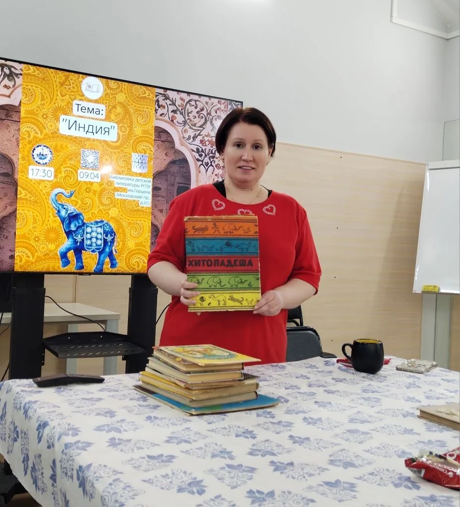 В апреле участники литературного клуба «Книги со вкусом вареной сгущенки» говорили о детской литературе Индии. Библиотекари познакомили студентов со знаковыми произведениями, в частности с Махабхаратой и ее уникальным переложением для детей, изданным в 1964 году. Также участники клуба познакомилась с богатым фольклором этой далекой страны и сборником «Хитопадеша». Студентка института детства Ирина Подмарькова представила доклад об индийских божествах и легендах о появлении Махабхараты.