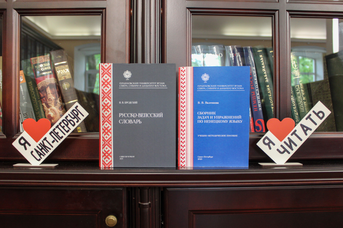 Также на выставке представлены издания по психологии и музыкальному образованию, два учебных пособия из серии «Герценовский университет вузам Севера, Сибири и Дальнего Востока»: «Сборник задач и упражнений по ненецкому языку» Виктории Васильевны Валенковой и «Русско-вепсский словарь» Игоря Вадимовича Бродского.