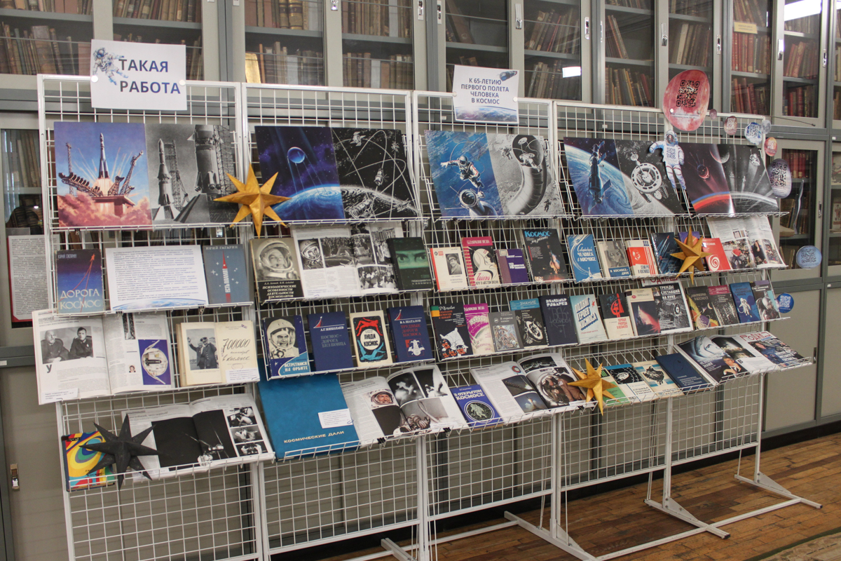 В конференц-зале фундаментальной библиотеки открылась выставка «Такая работа», посвященная Дню космонавтики и приуроченная к 65-летию первого полета человека в космос.